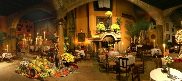 Stedet er virkelig verdt et besøk - det praktfulle interiøret med utstillinger av svulmende frukt og grønnsaker - så du kan føle deg fraktet til høsttakkefest. Baren pleide å være Palma's best bevarte hemmelighet - en verden av dekadent eksklusivitet for den velstående. Eksklusivitet ble garantert, fordi det har alltid vært et problem å finne den. Men nå kan du spør om vei og bli forklart veien til en stor gammel tredør i en av de trange sidegatene i hjertet av Palma gamleby. Det var tidligere ingen tegn, som fortalte hva du fant bak døren, men nå er det et diskret tegn, som avslører identiteten. Gå inn gjennom den gamle døren og du mistenker, at du besøker en helt annen verden. Stearin gløden fra utallige smijern kandelaber viser skygger på de blodrøde vegger, skåler fulle av frukt kaskader flyter over steingulv og flotte blomsterdekorasjoner av friske blomster fullfører bildet og følelsen av å delta på en film.