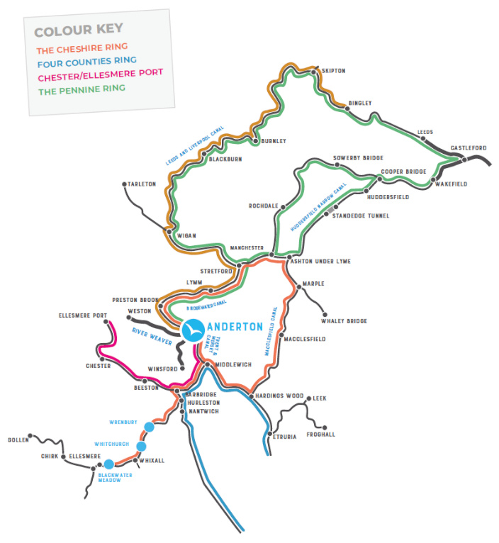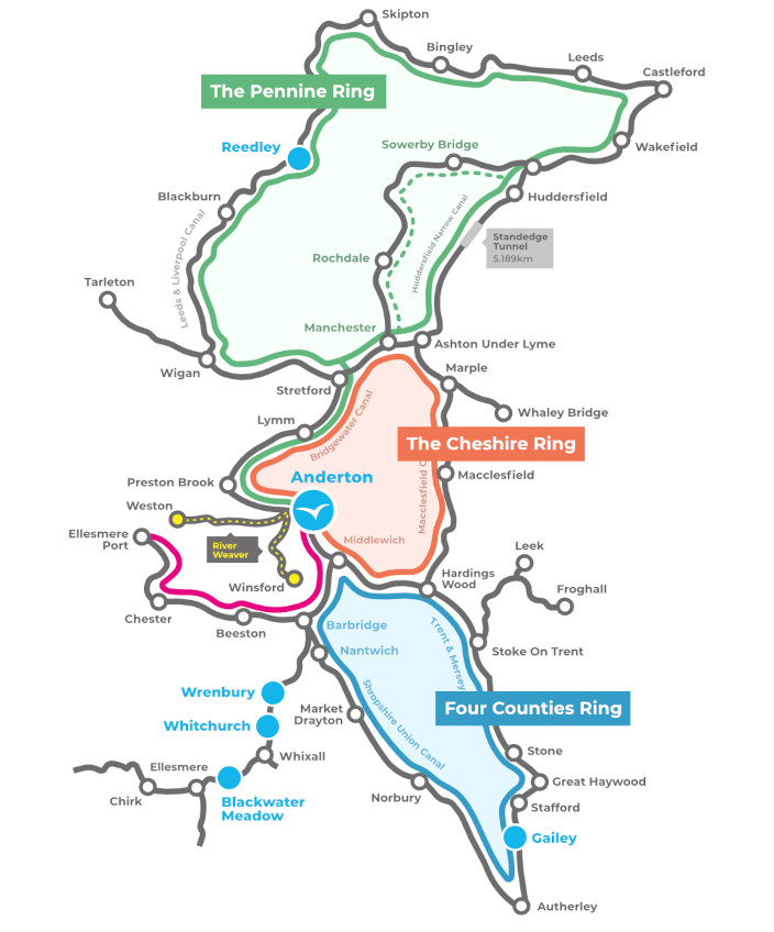 - Ringen omfavner hele Macclesfield Canal og deler av kanalene Trent & Mersey, Bridgewater, Rochdale, Ashton og Peak Forest, så dere kan oppleve svært variert landskap.