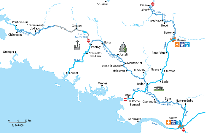 Som hjelp til planlegging av din ferie anbefaler vi vår kanalkartbok, som blant annet inneholder en distanse-/time-tabell og oversikt over antall sluser mellom de forskjellige byene på vegen. Kanalkartboken inneholder dessuten mange nyttige opplysninger for seilas i Bretagne, f.eks. slusenes åpningstider, signaler, fartsgrenser, nyttige adresser og telefonnumre til turistkontorer, informasjon om markedsdager, museer med mer.