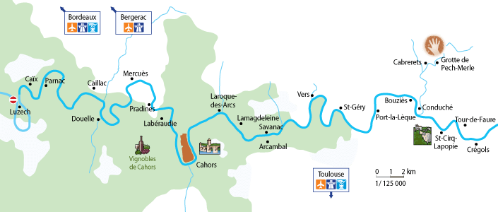 Lot er med sine 491 km Frankrikes syvende lengste elv. Det er en elv som renner omkring flotte fjell, elvebredden er smal og det er få mindre elver som renner ut fra hovedelven. Vannstanden i området varierer mye etter hvilken sesong det er, noe man må være litt oppmerksom på. I 1926 ble elven faktisk stengt, men ble gjenetablert i 1989 del for del og fungerer nå optimalt for seiling. Fortrinnsrett: Noen steder er elven smal og det er noen regler som må overholdes for lystbåter og ervervsbåter, ut i fra om man seiler med eller mot strømmen, men dette forklares nærmere på basen. Foran hver demning vil det være signal og bøyer som viser seilgrensene. Vær oppmerksom på å overholde disse ettersom strømmen kan være ganske sterk. Ved byen Nicols kan man få båten flyttet fra elven Lot til elven Baïse, men da skal man ha med en profesjonell kaptein som kan manøvrere båten. I boka finner du turistbeskrivelser på engelsk, tysk og fransk. Boka inneholder også mange nyttige opplysninger om seilas i området, med for eksempel åpningstider, signaler, fartsgrenser, nyttige adresser og telefonnumre til turistkontorer, markedsdager, museer og med mer. Boka er rikt illustrert med bilder. Boka finnes om bord i båten, men veldig mange bestiller den på forhånd til forberedelse til båtferien og som utklippsbok til minne om båtferien.